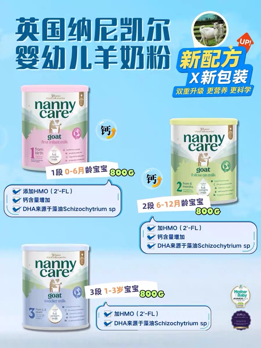 英国Nannycare纳尼凯尔婴幼儿羊奶粉3段900g 新旧随机