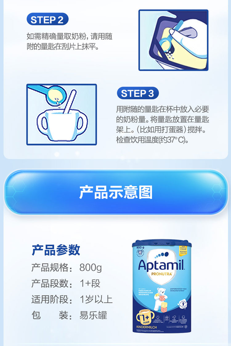 (新包装)德国爱他美Aptamil幼儿配方奶粉1+段800g(配方微调需转奶)