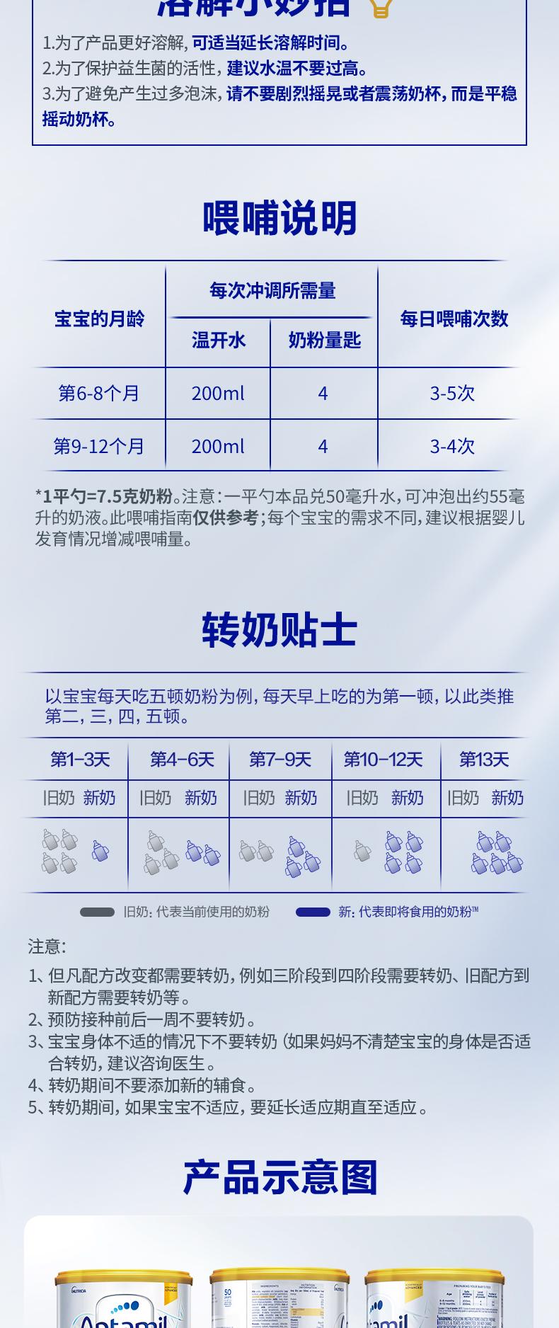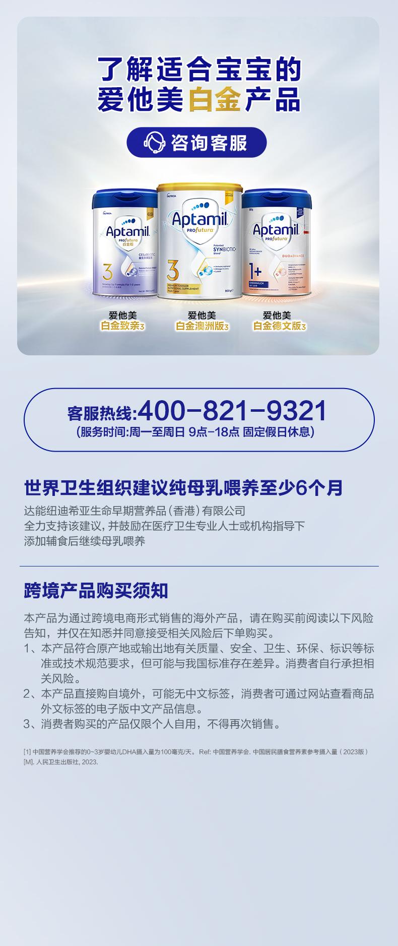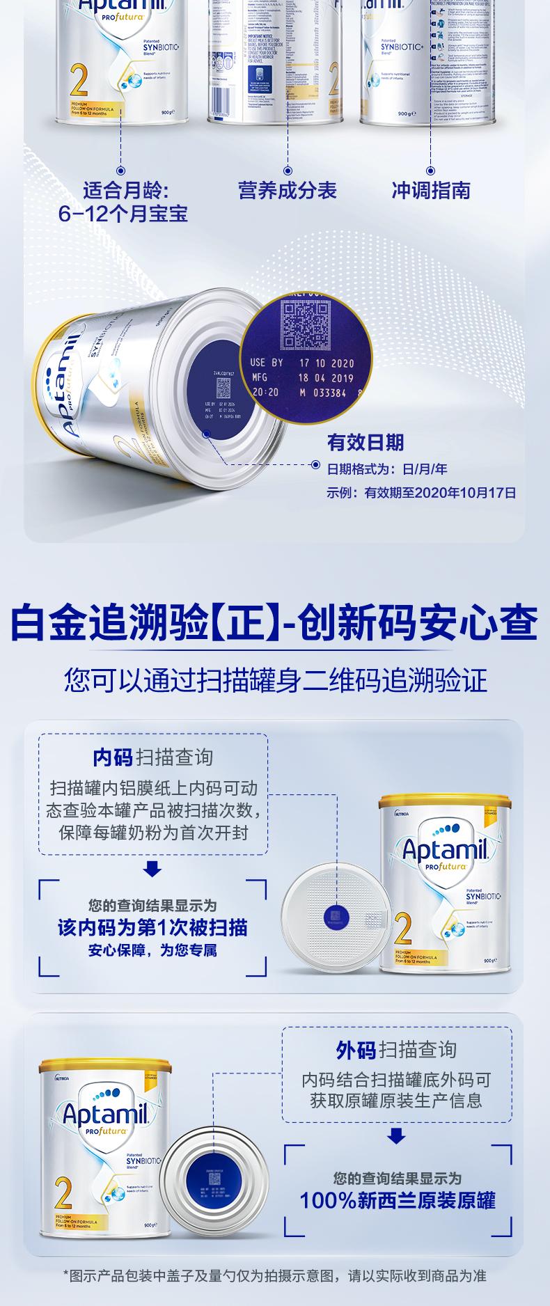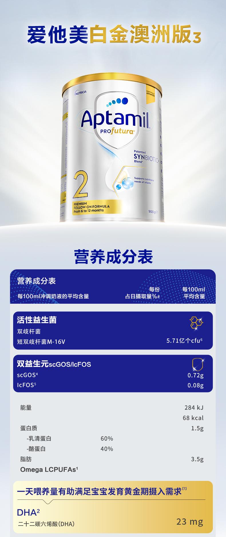 (淘拼等公域控价245 严控)澳洲爱他美Aptamil白金婴儿配方奶粉2段900g