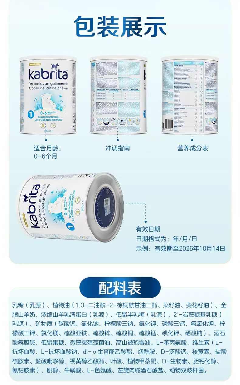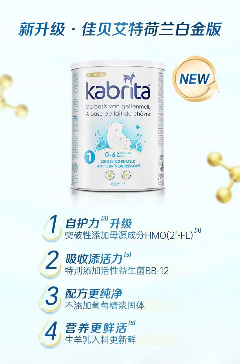 (禁上淘拼等公域平台)荷兰版佳贝艾特羊奶粉白金版1段800g(包装随机)