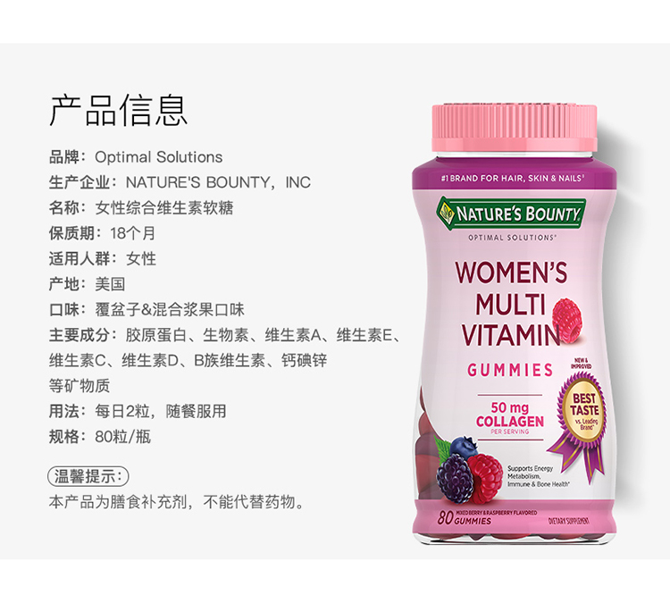 Nature's Bounty自然之宝女性复合维软糖80粒