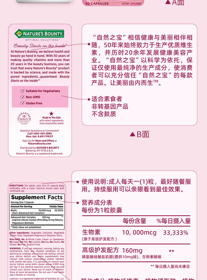 Nature's Bounty自然之宝生物素硅酸盐复合物密发胶囊30粒