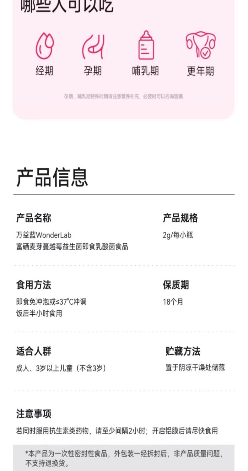 万益蓝WonderLab 蔓越莓益生菌即食乳酸菌食品_30瓶装