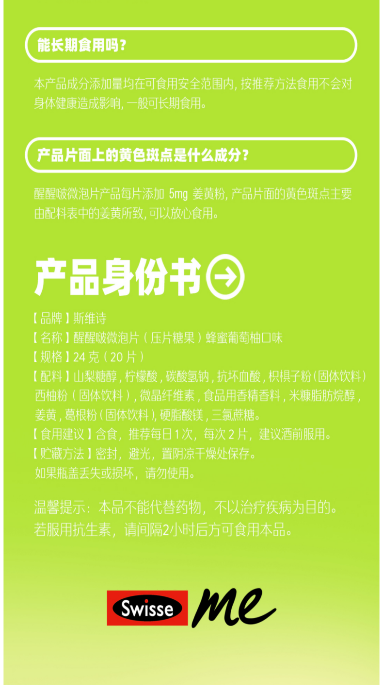 Swisse/斯维诗 醒醒啵微泡片(压片糖果)蜂蜜葡萄柚口味20片