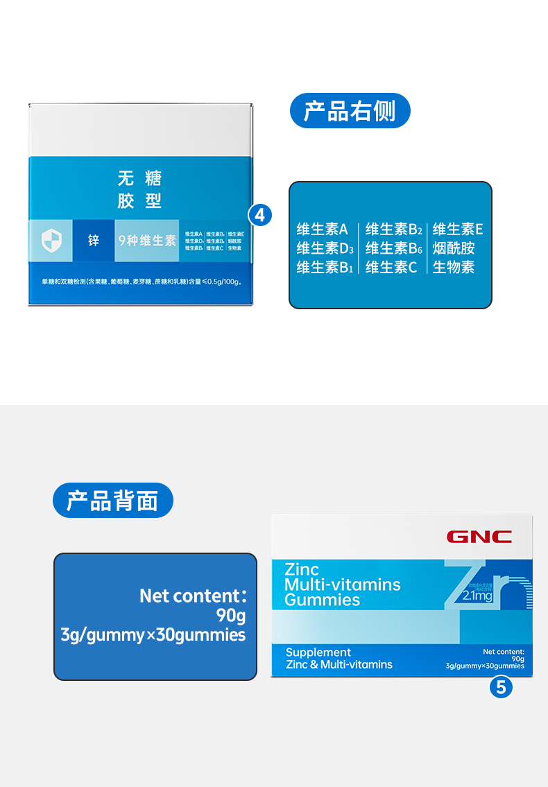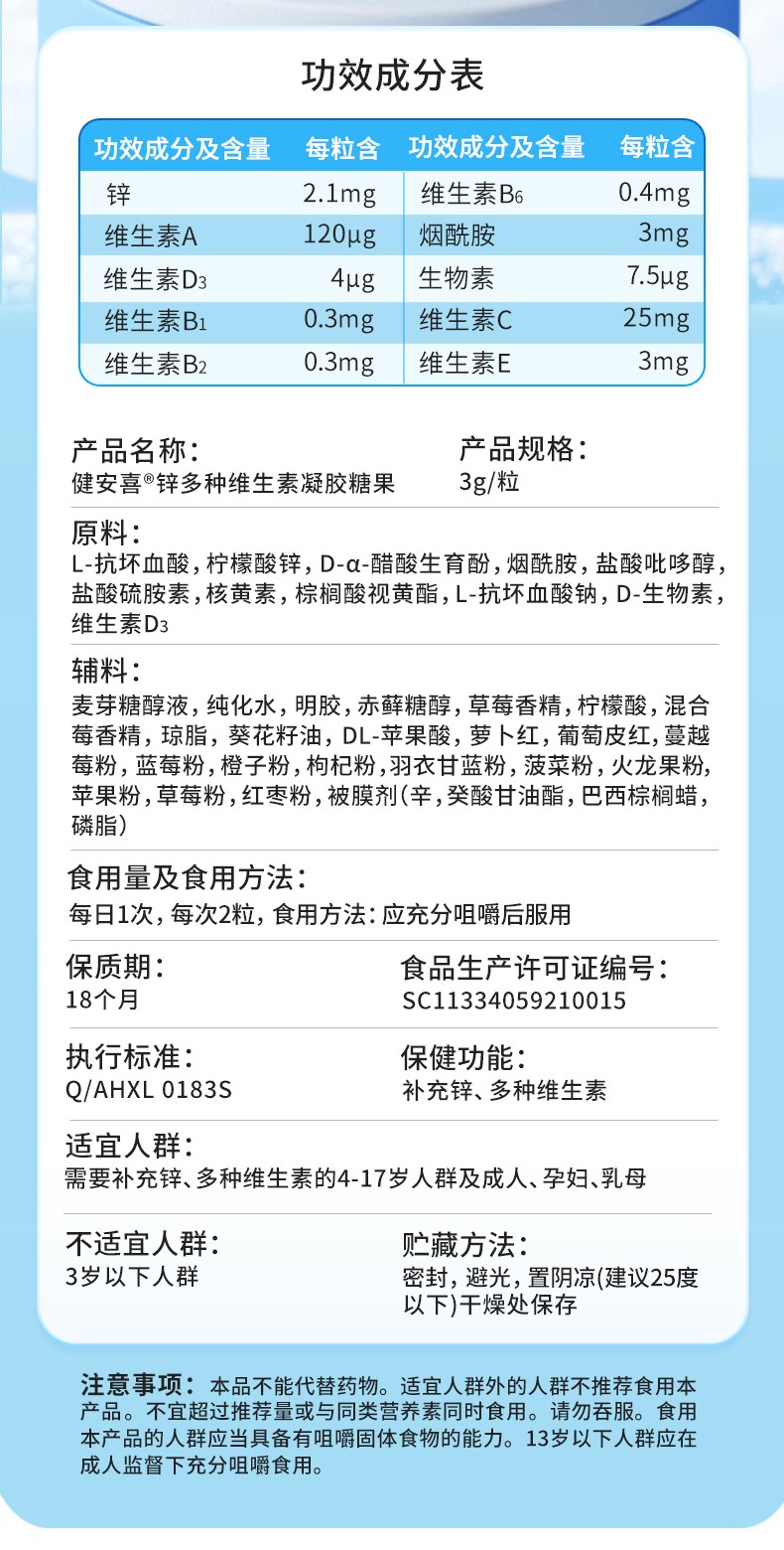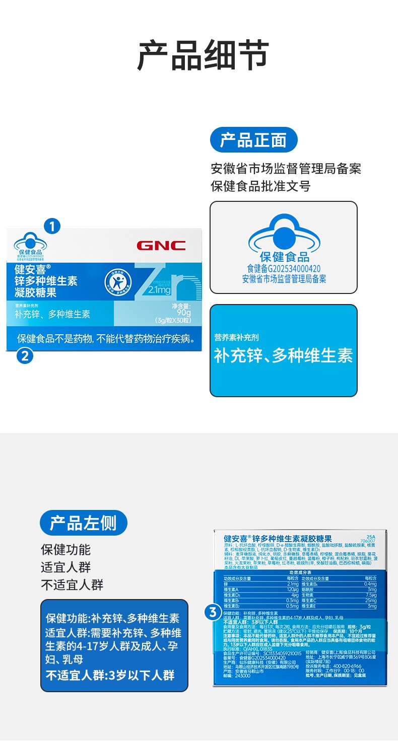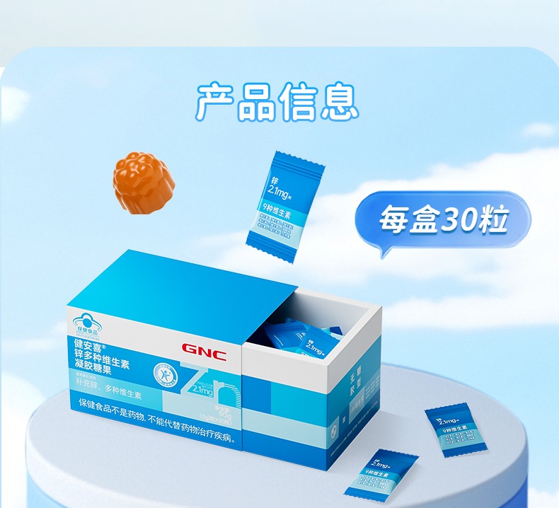 GNC/健安喜 ®锌多种维生素凝胶糖果3g/粒*30粒