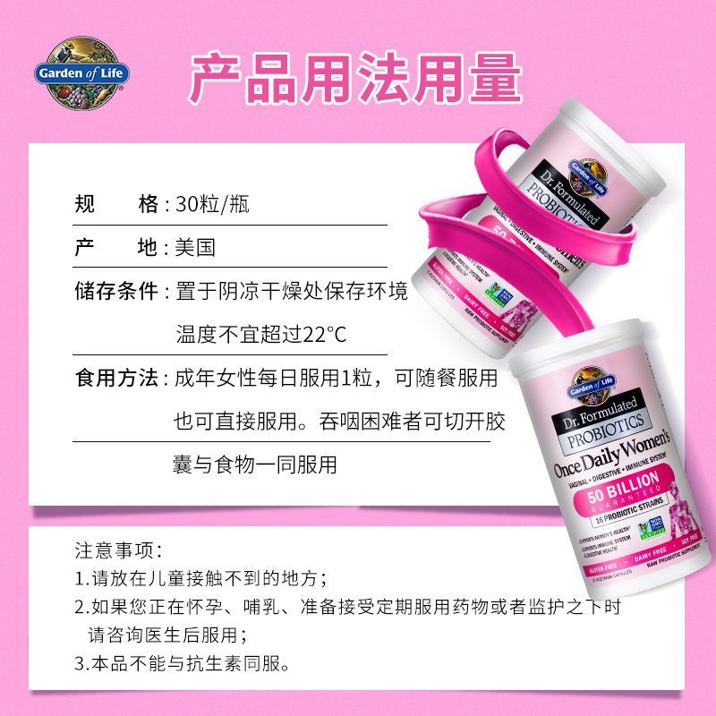 Garden of Life生命花园女士每日益生菌胶囊30粒