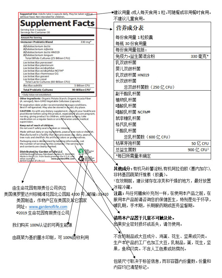 Garden of Life生命花园博士配方免疫益生菌胶囊30粒