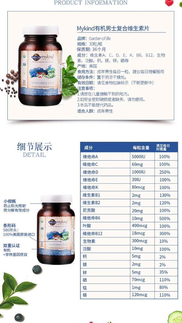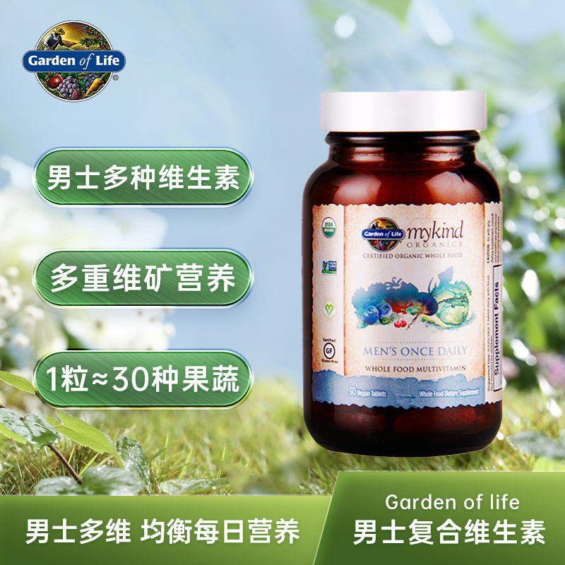 Garden of Life生命花园mykind男士每日营养多种维生素片30片