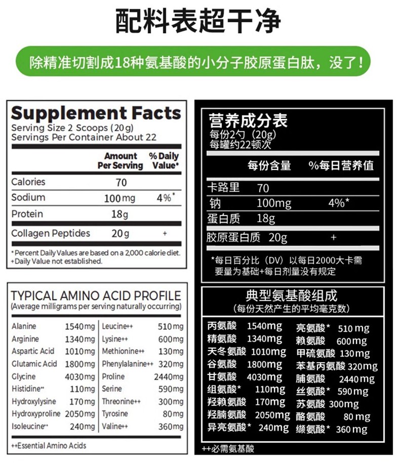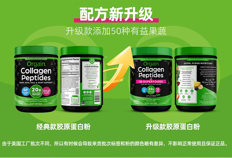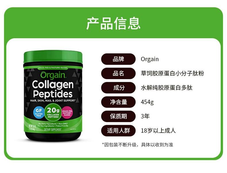 Orgain傲感草饲胶原蛋白肽粉原味454g