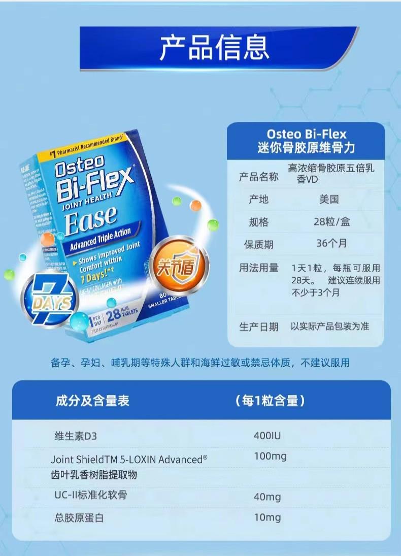 OSTEOBIFLEX关捷健EASE加强版迷你骨胶原维骨力28片