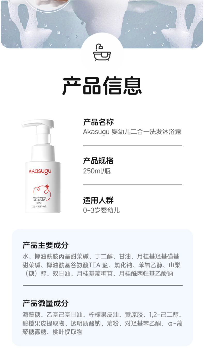 爱舒屋 婴幼儿二合一洗发沐浴露250ml