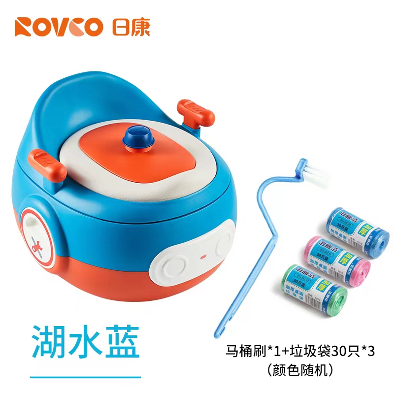日康 多功能儿童马桶(蓝色)+3卷垃圾袋+马桶刷