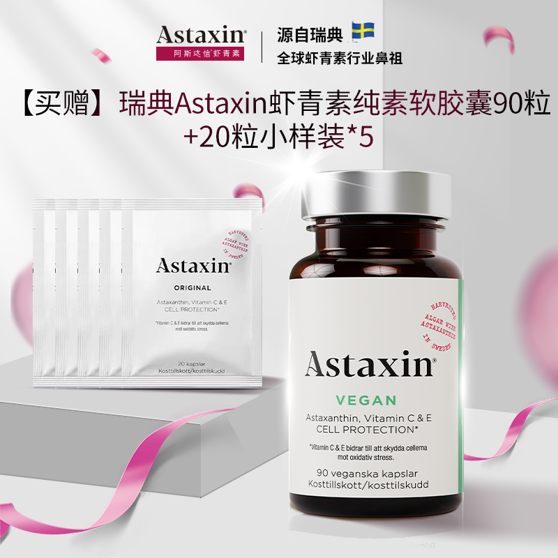【买赠】瑞典Astaxin虾青素纯素软胶囊90粒+20粒小样装*5