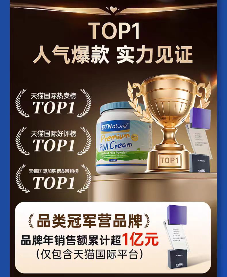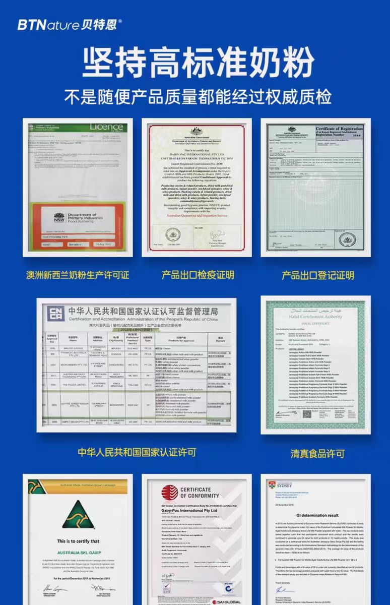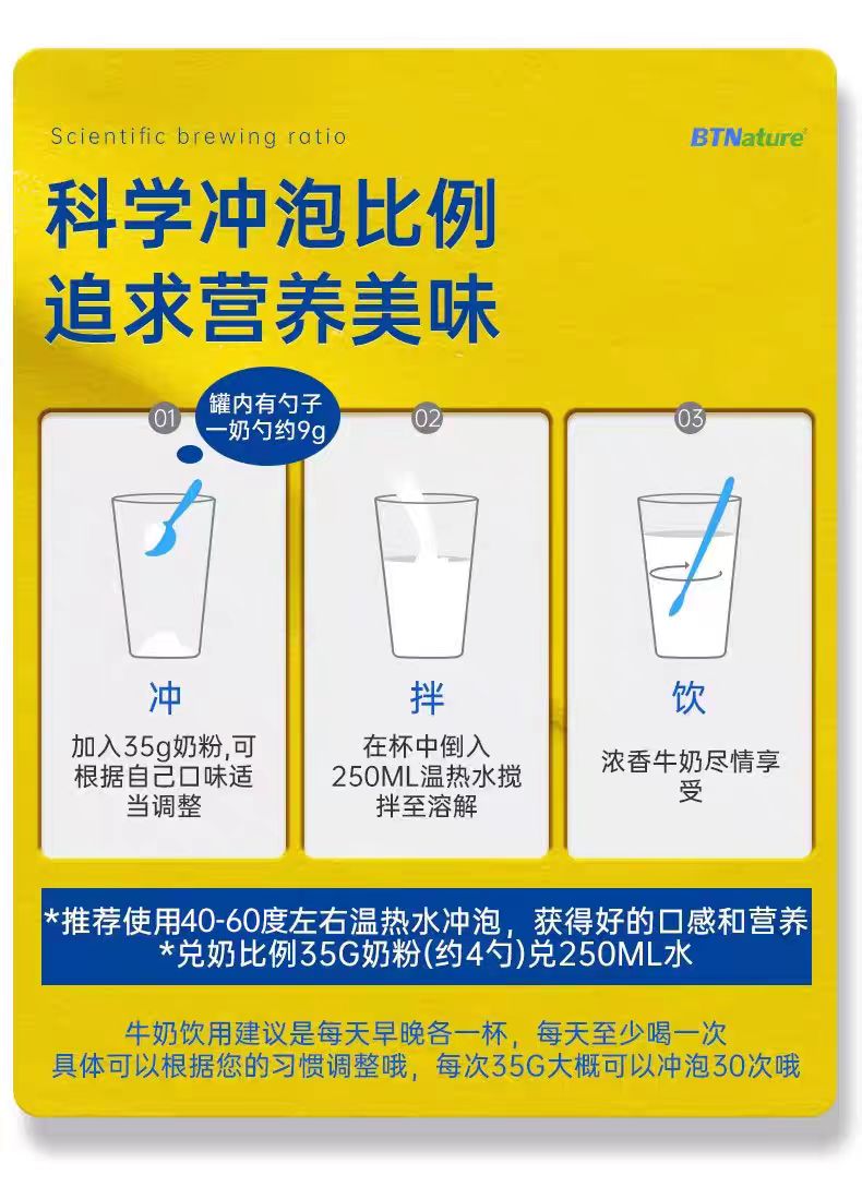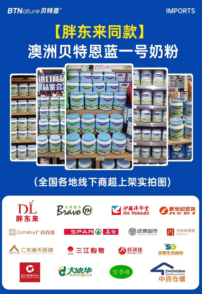新西兰版本 贝特恩(BTNature)蓝一号成人全脂高钙牛奶粉 1kg/罐