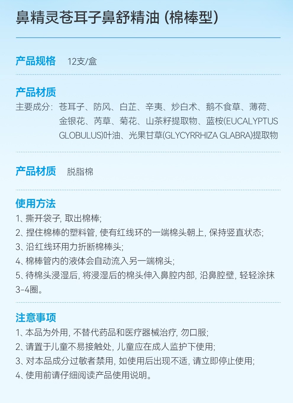 鼻精灵 苍耳子精油棉棒(棉棒型)通鼻神器 12支/盒