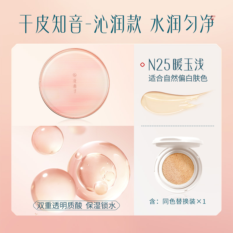 花西子 玉容无瑕气垫粉底液-沁润款-N25暖玉浅-11g*2(一正一替)