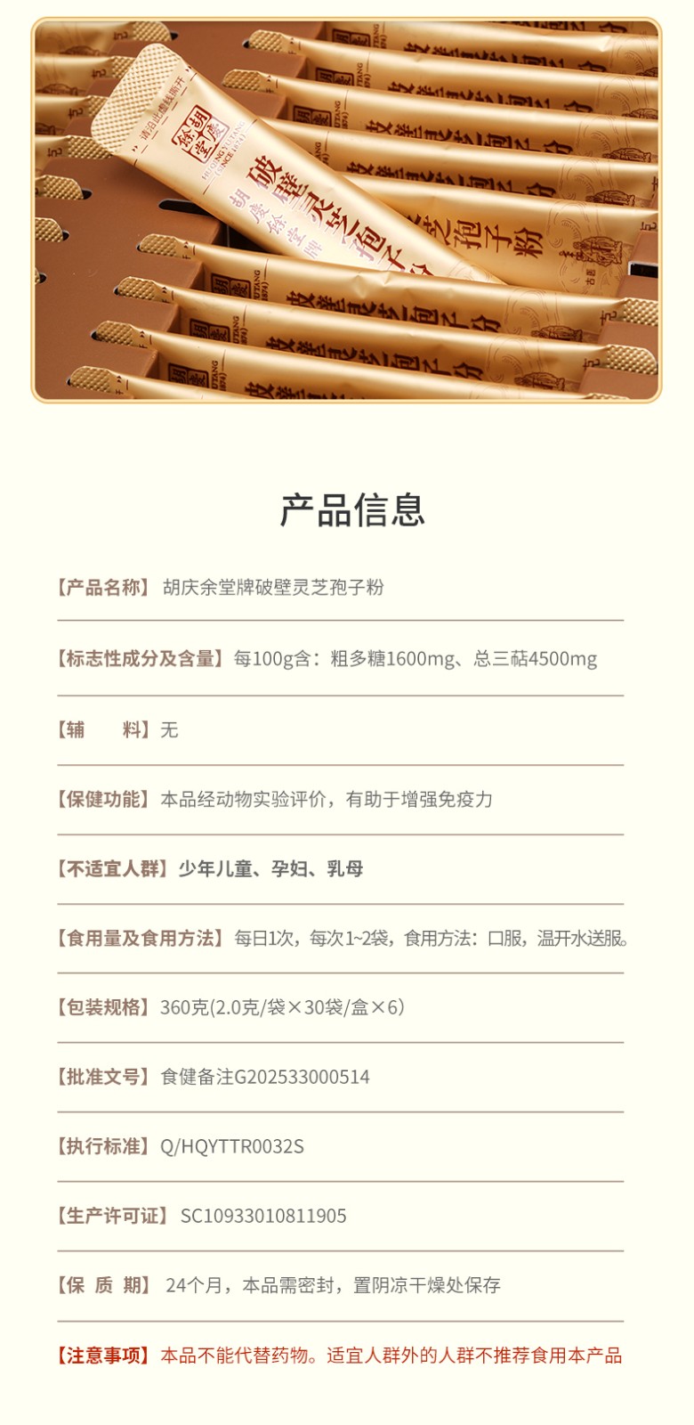 胡庆余堂 礼盒装破壁灵芝孢子粉360克
