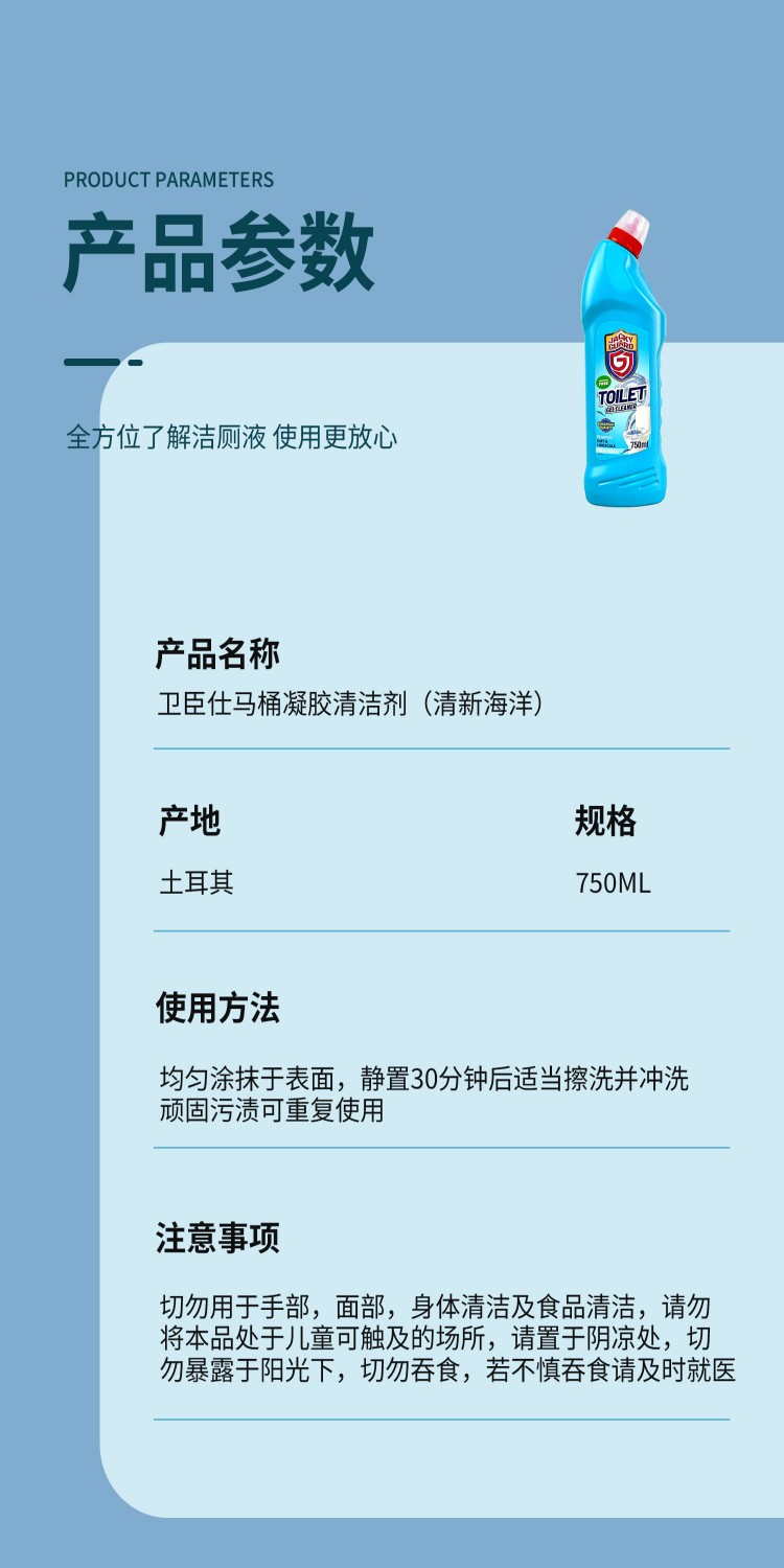 英国JACKYGUARD卫臣仕 马桶凝胶清洁剂(清新海洋)750ml*3瓶