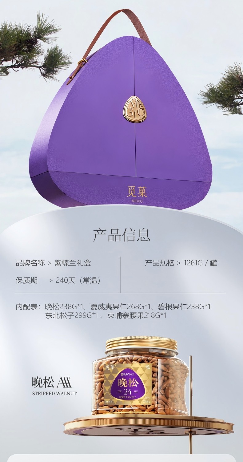 觅菓 紫蝶兰时尚高档坚果礼盒-1.261kg