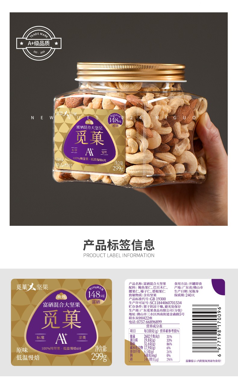 觅菓 AA+富硒混合大坚果299g