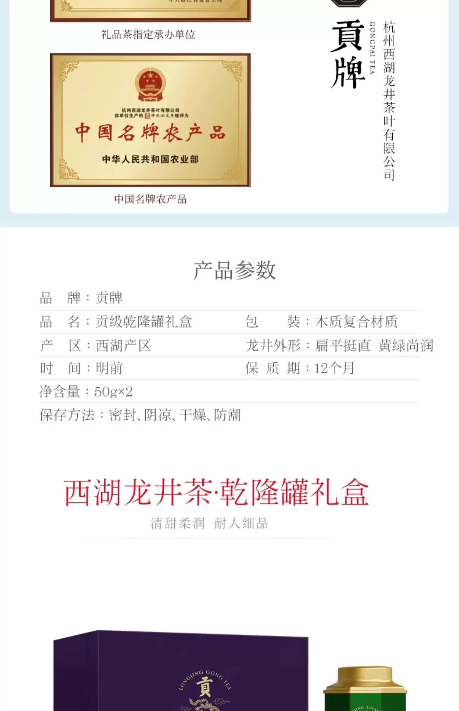 贡牌 西湖龙井乾隆罐礼盒(贡级)100g