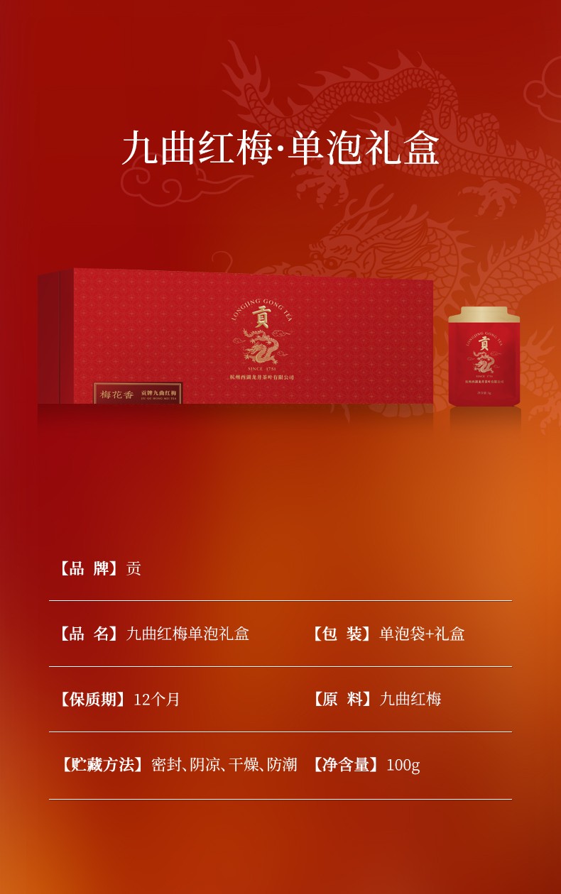 贡牌 梅花香九曲红梅单泡礼盒(一级)100g