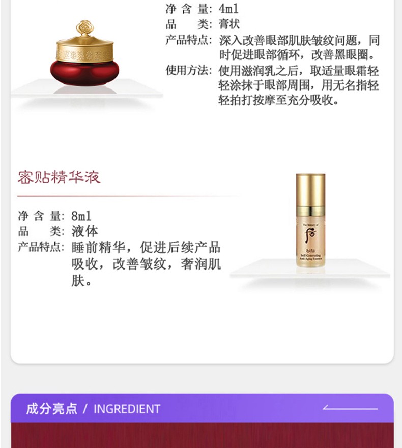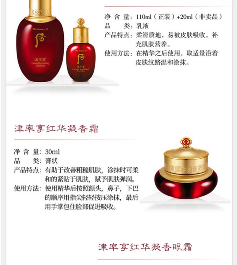Whoo后套盒套装津率享红华凝香水乳霜三件套