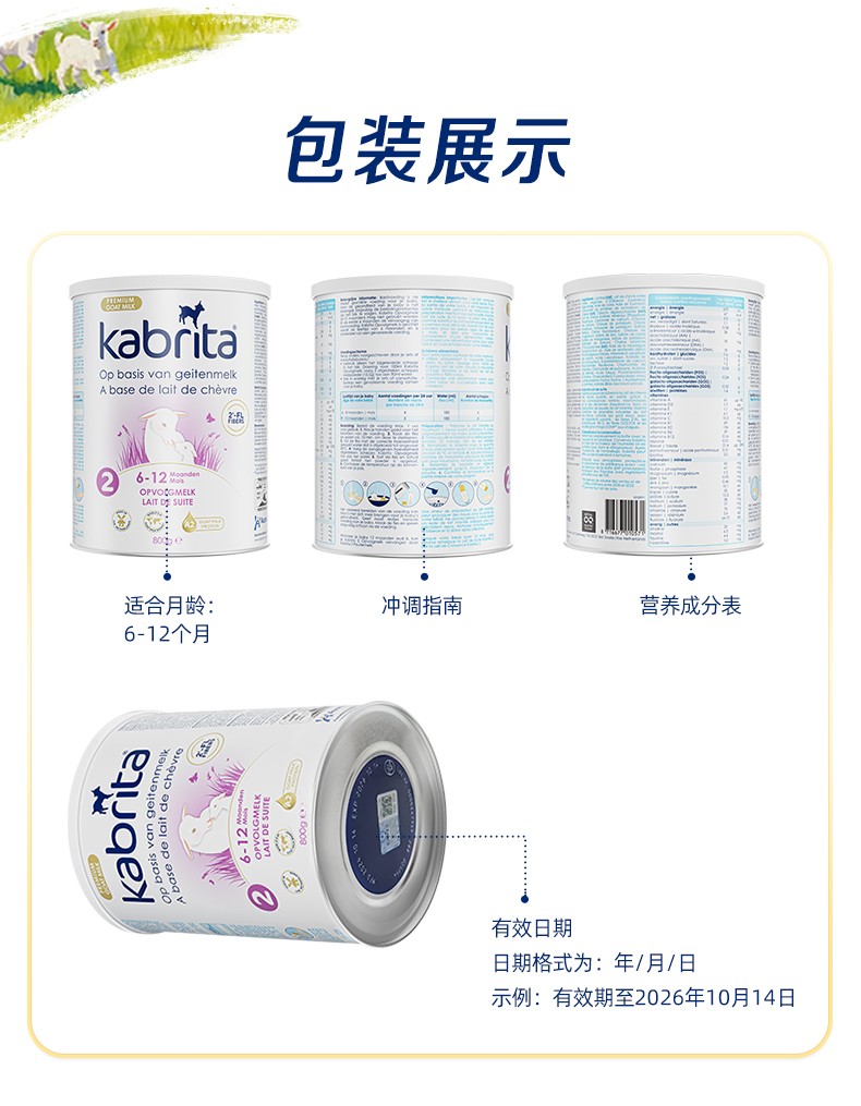 荷兰版佳贝艾特羊奶粉白金版2段800g(包装随机)