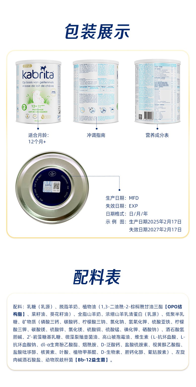 荷兰Kabrita佳贝艾特羊奶粉白金3段400g(新包装/新配方)