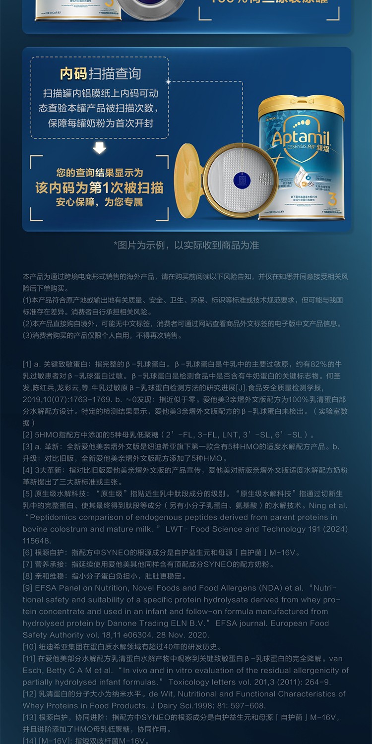 港版Aptamil爱他美奇迹白罐 亲熠部分水解幼儿奶粉3段1-3岁800g