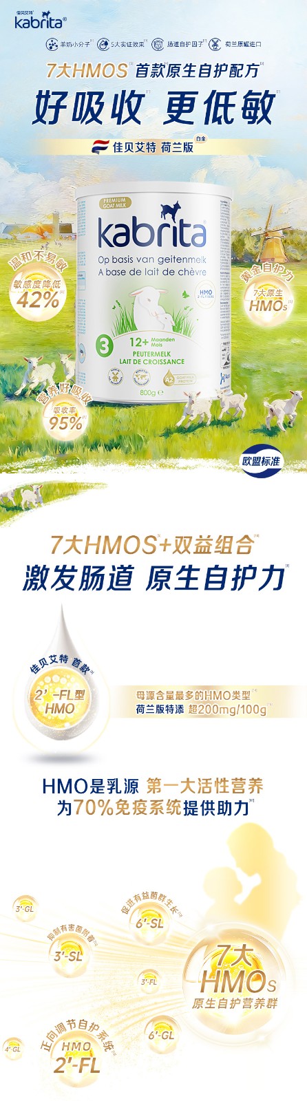荷兰版佳贝艾特羊奶粉白金版3段800g(包装随机)